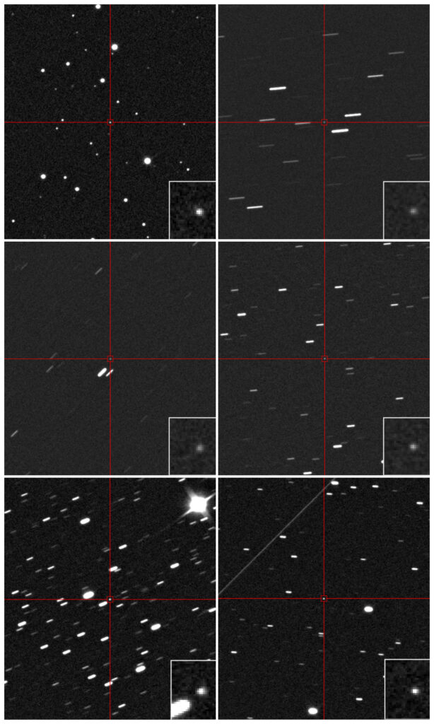 En cada fotografía el asteroide aparece: